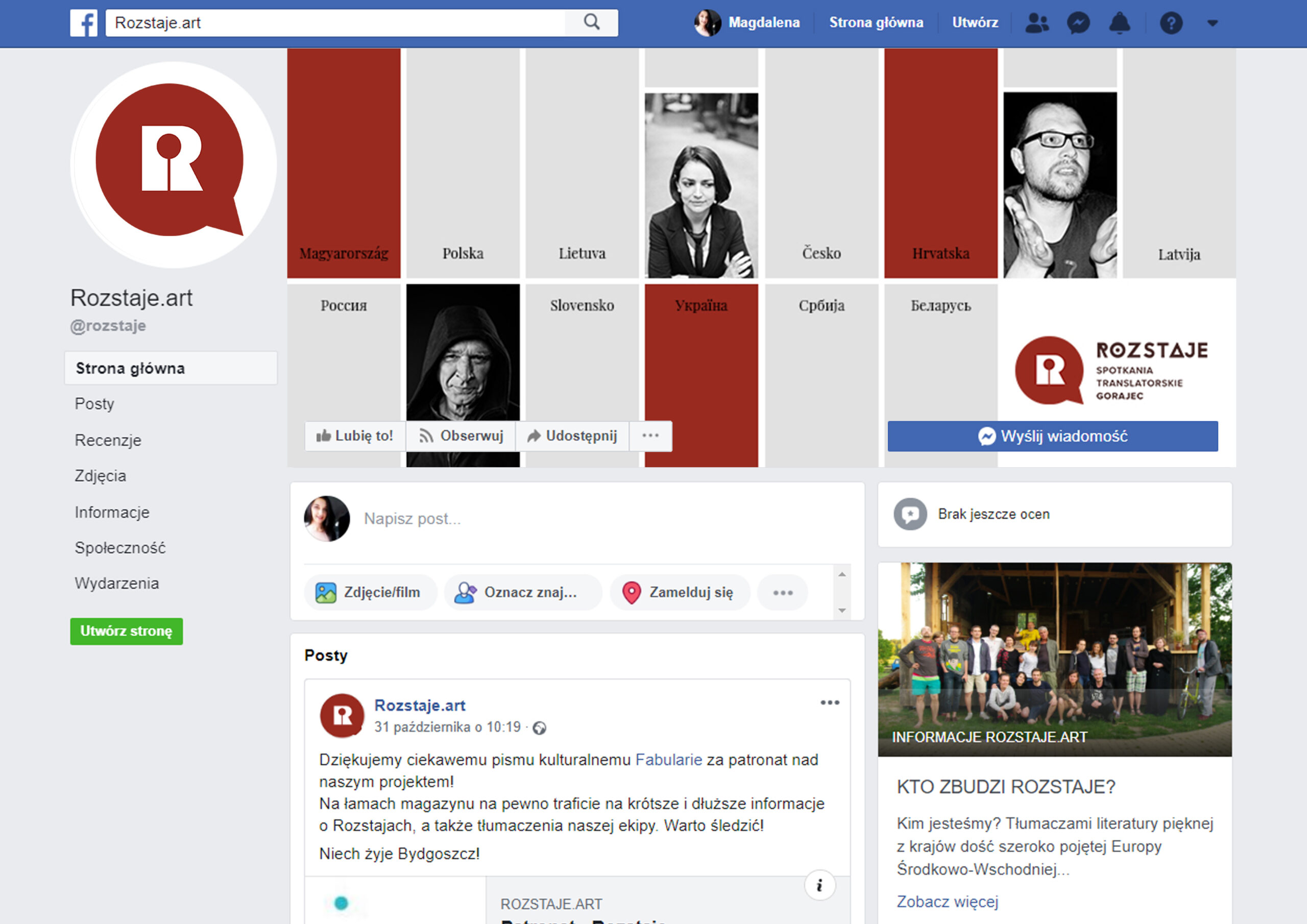 Zestaw grafik na Facebook z uwzględnieniem:- grafiki głównej w wersji na stałe (kafelki z nazwami krajów i zdjęciami wybranych twórców) oraz wersji okazjonalnej z informacją o aktualnych wydarzeniach